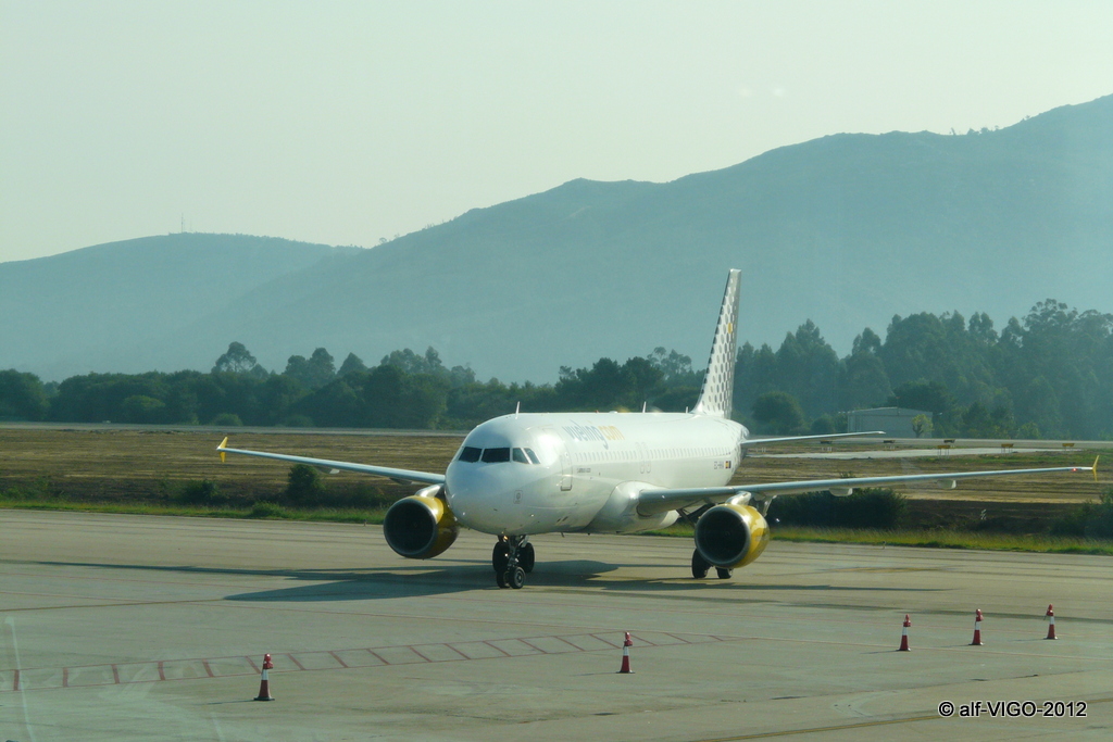 Estas tomas fueron obtenidas en la terminal de Peinador el día 7-9-12, se trata de un avión Airbús a 320, cuyo primer vuelo lo hizo el 10-4-2000.realiza entre otros el servicio de vuelos entre Peinador VIGO , y el Prat Barcelona, es propiedad de la compañía española Vueling.